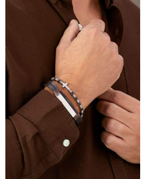 Collar Marea de Piel con Placa de Acero y detalle en...