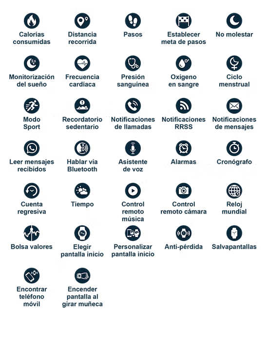 El reloj SmartWatch Marea se conecta mediante APP a tu móbil y presenta las siguientes características entre otras: